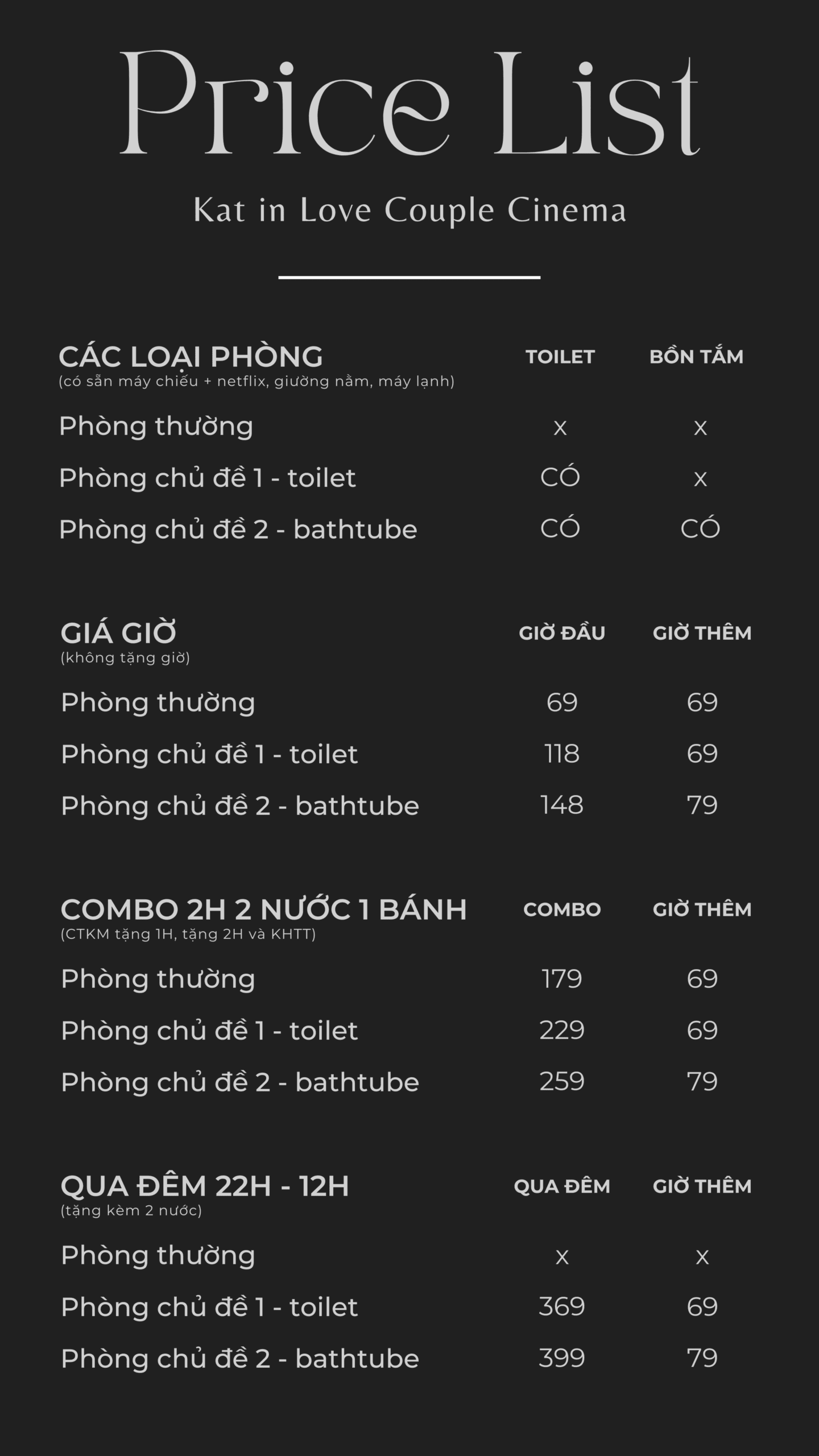 Với hệ thống LIVE CINEMA full HD, âm thanh nổi và tài khoản bản quyền Netflix, Youtube Premium được tích hợp sẵn để khách có thể tự chọn hot movie hoặc series TV hoặc xem trực tiếp ngoại hạng Anh với K+. Chill out với Youtube hay 1 live show của thần tượng bạn yêu thích … trong một không gian ấm cúng và lãng mạn.