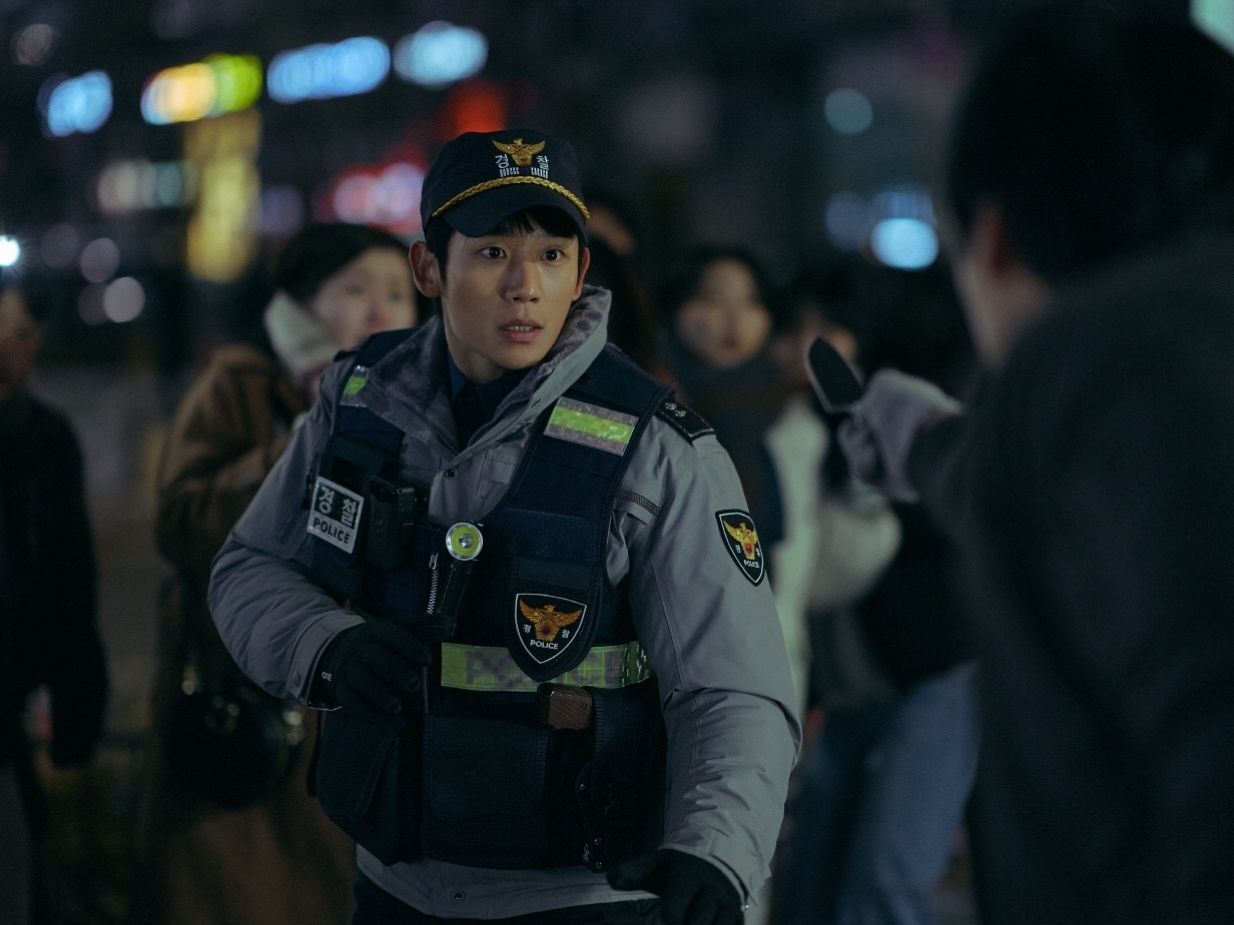 Và rồi… xuất hiện Jung Hae-in – anh cảnh sát mới vào đội, gương mặt baby mà tâm lý twist ngang phim. Ai nhìn cũng tưởng “em này dễ thương”, ai ngờ ẩn chứa một bầu trời u tối.